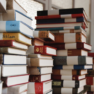 Materials: repurposed vintage book covers and FSC-certified paper pages