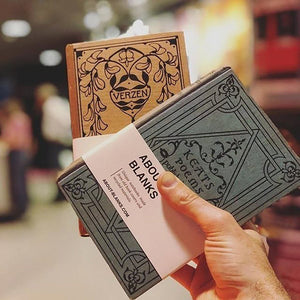 About Blanks notebooks are unique, one-of-a-kind pieces, handmade in The Netherlands from old book covers. By removing the old inner works and refilling the covers with paper from responsible sources, new notebooks are created. Blank pages make the book suitable for use as a sketchbook, notebook, or journal.