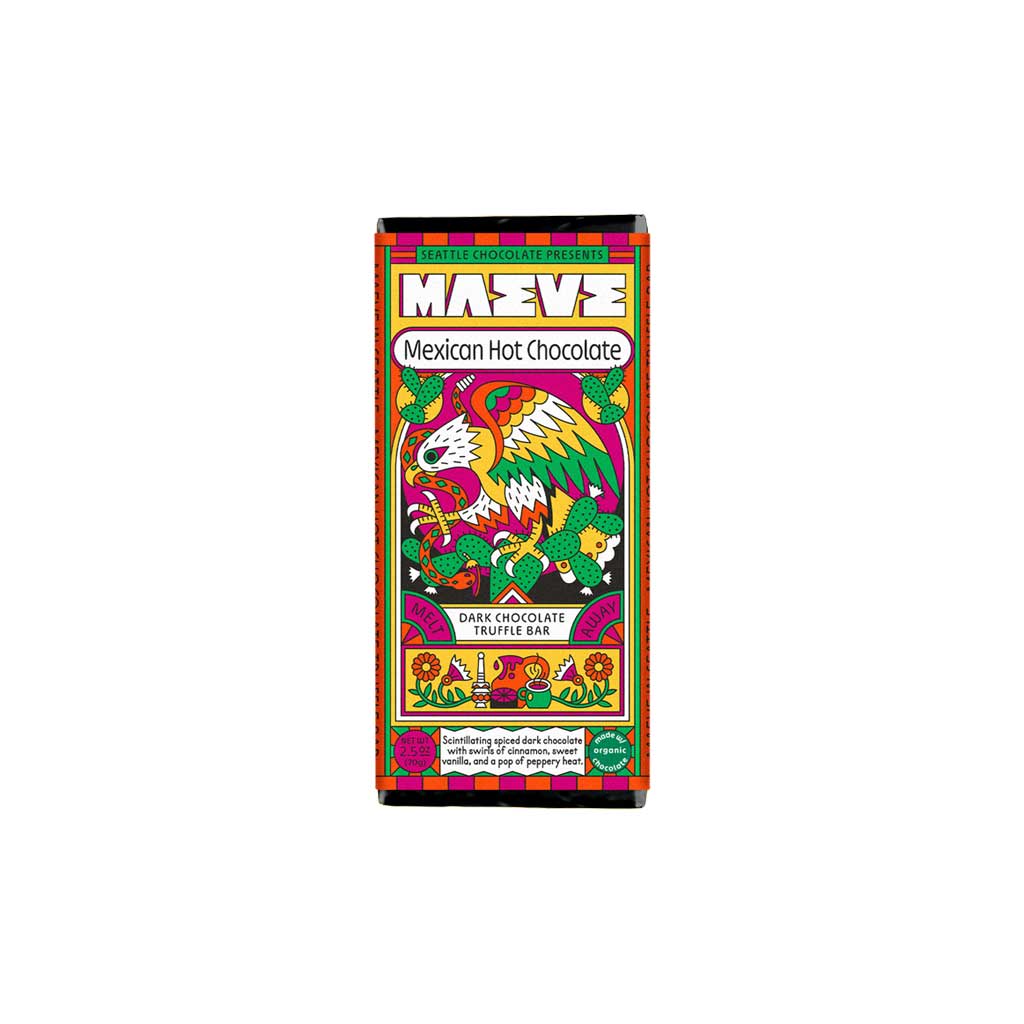 Celebrate the spirit of the season with Maeve's Mexican Hot Cocoa Truffle Chocolate Bar. Festive swirls of cinnamon, cayenne, and sweet vanilla mingle with rich dark chocolate, creating a comforting holiday treat with a cheerful hint of heat in every bite.