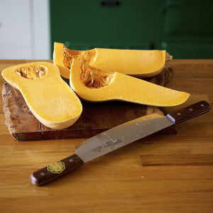 Used in Japan by butchers and fishmongers for frozen cuts, this double-handle knife is very useful for heavyweight jobs like cutting through pumpkins and squash.