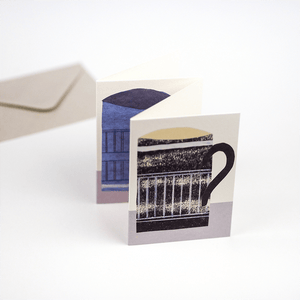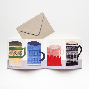 Four proper mugs, based on paintings and objects from Kettles Yard House in Cambridge, England. This small accordion-folded card is perfect for attaching to a present or popping into a gift basket.