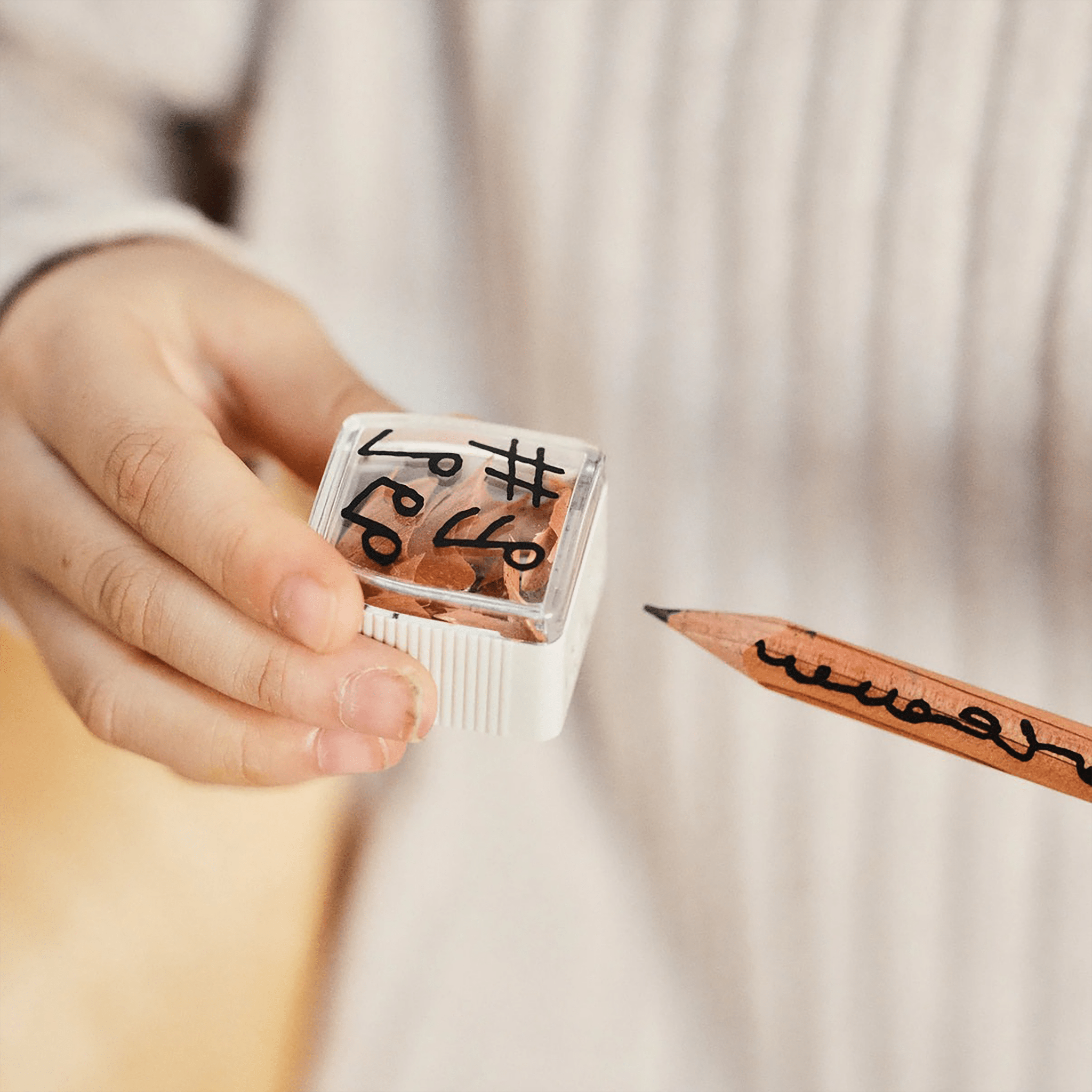 Cossot loved pencils, but needed the perfect instrument to sharpen them in their dull moments. And she is anything but dull! So Cossot turned this little block into an instrument to make even your dullest creative tools sing again. Even the pencil shavings turn out beautiful in the end.