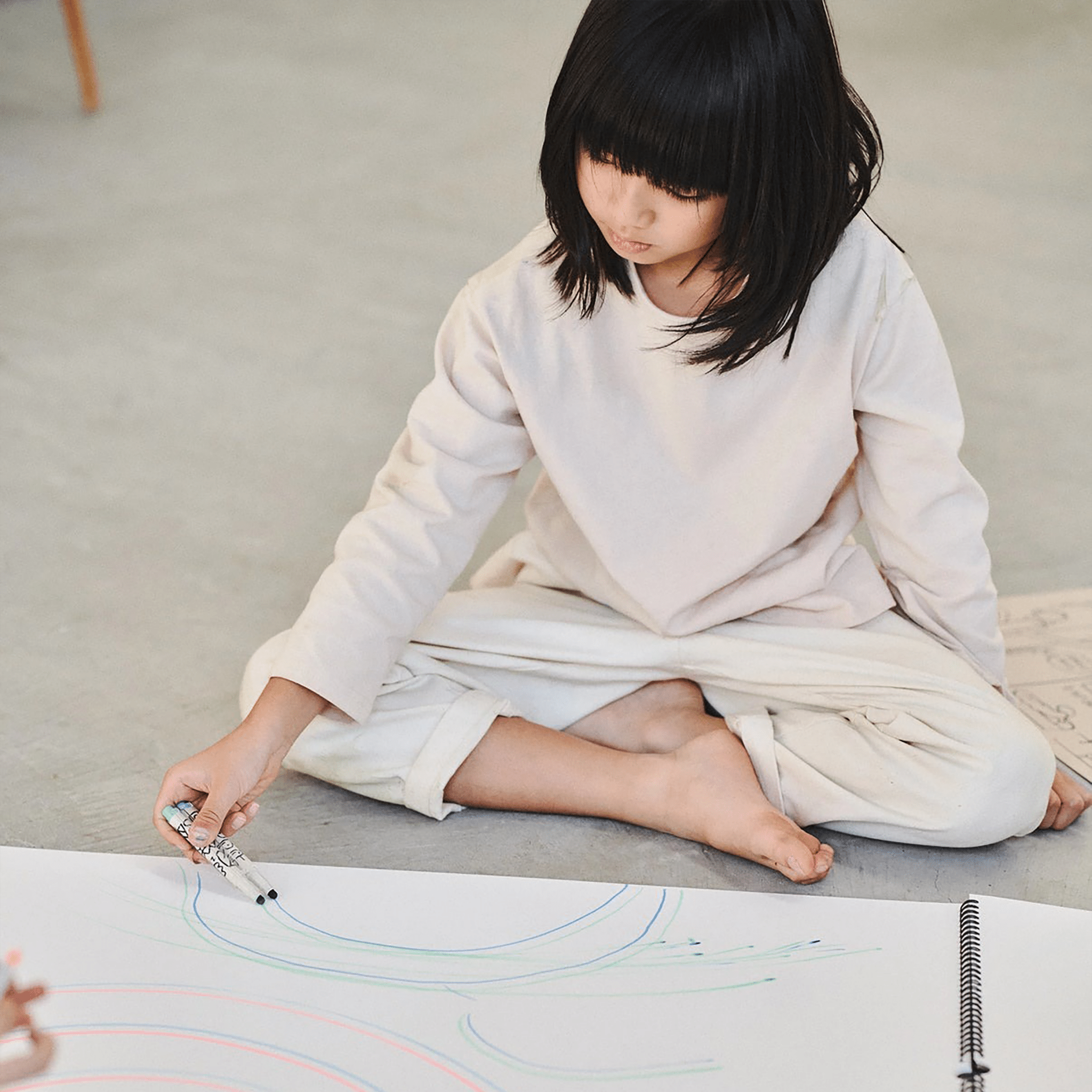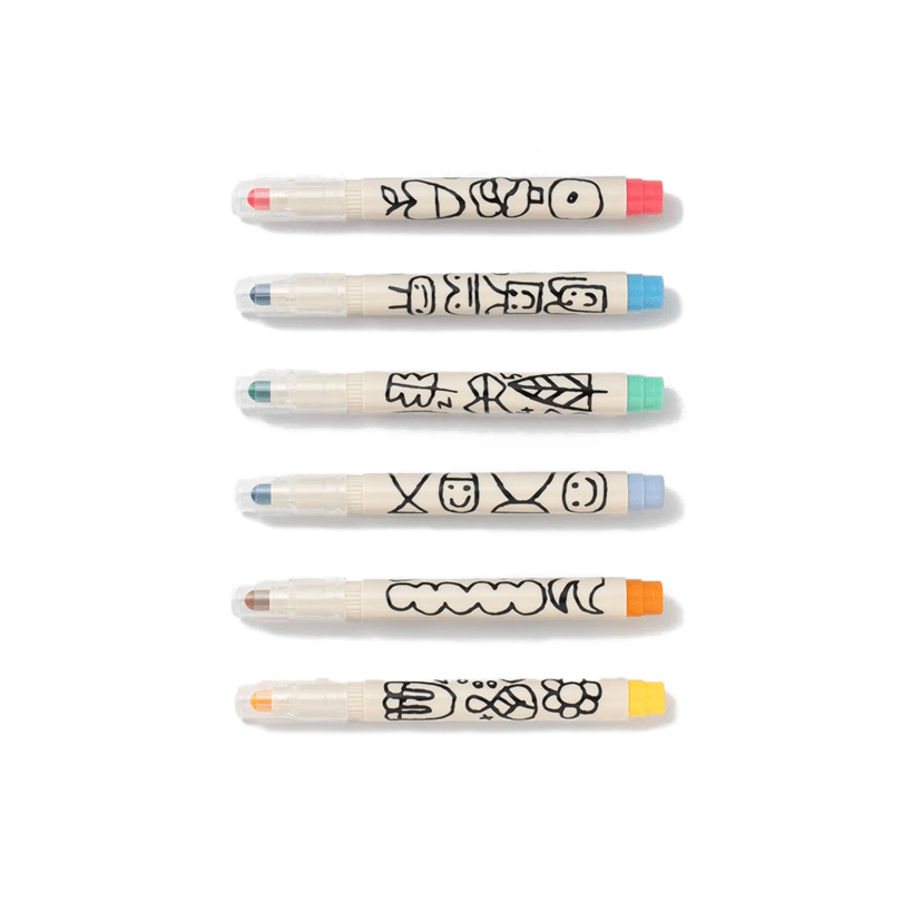 A set of six kids' markers designed to spark creativity in young artists. These vibrant markers feature a pressure-resistant tip, making them perfect for little hands that love to draw with enthusiasm. With rounded tips that are designed to work at all angles, they allow kids to explore endless artistic possibilities.