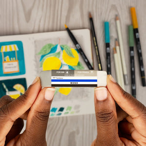 Due to the abrasive nature of this eraser, we recommend taking care when erasing on thinner paper, as it could create holes.