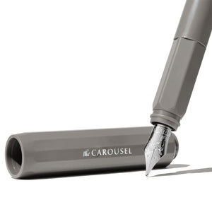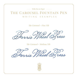 A custom-ground steel nib produces beautifully nuanced lines with its subtle flexibility and is available in either fine or medium weight. The 12-sided cap is a nod to the carousel for which the pen was named.