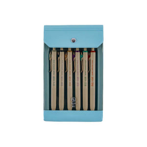Add a colorful touch to your Hobonichi Techo with this set of six Uniball One gel pens. Part of Hobonichi's TSUKI no IRO line, this set helps you personalize your planner with the 12 soft colors found throughout the Techo.