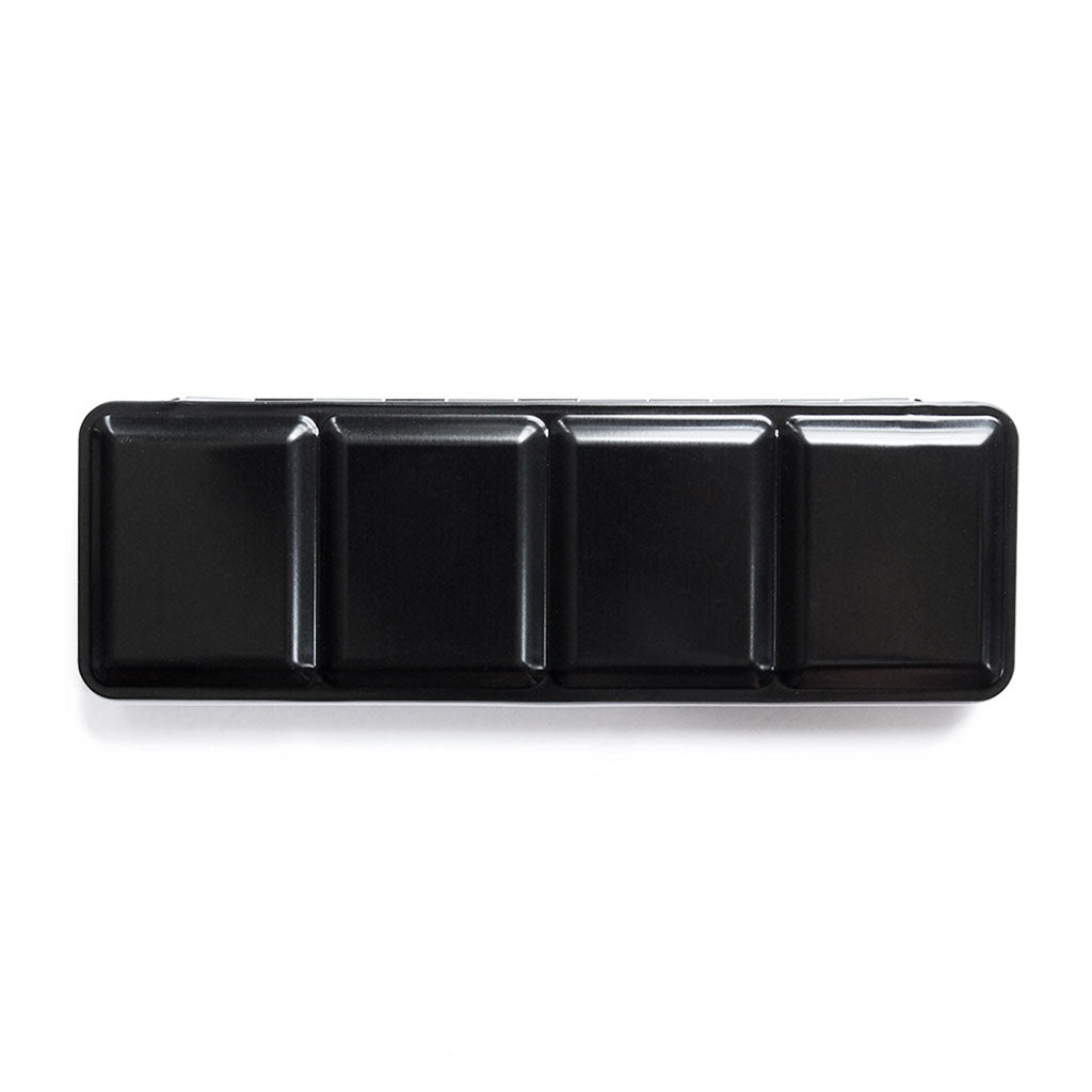 A sturdy metal carrying case imported from Germany, sized to hold 24 half pans of watercolor paint. Paints not included - mix and match your favorite colors to build your own custom palette! There is a finger loop on the bottom of the palette.