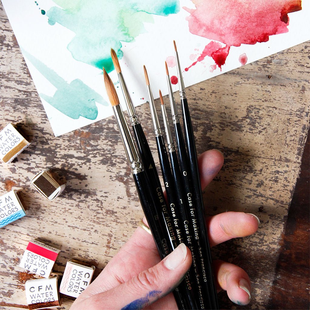 Case for Making's Round Brushes are imported from Germany and feature a synthetic bristle tip. Available in seven sizes, these round brushes are incredibly versatile. Depending on the pressure and angle of application, they can go from a thick swatch to a thin line in a single swipe. The size 8 is great for kids!