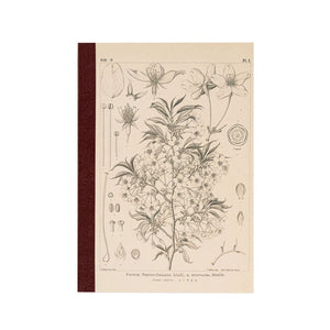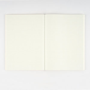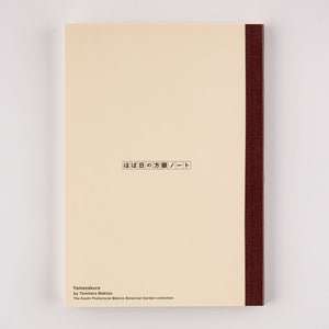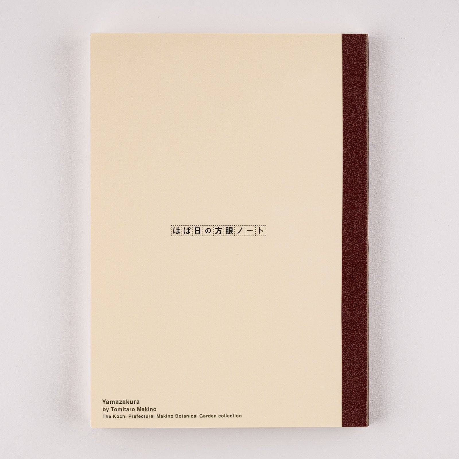Compatible with the Techo Cousin (A5) covers, Hobonichi's plain notebook uses Tomoe River paper, lays completely flat without having to hold it down, and the pages are divided into four sections with the use of different ink colors for the grid pattern. A botanical illustration of a Yamazakura drawn by Dr. Tomitaro Makino is on the front cover.
