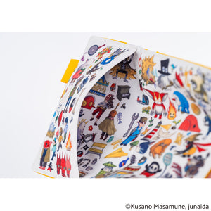 A cover for the Hobonichi Techo Original A6. The design features illustrations taken from the front cover of the song-art book Himitsu Stranger, which is based on the lyrics from 13 songs recorded by Masamune Kusano for the Spitz album "Himitsu Studio". Artist junaida illustrated the lyrical stories for each of the songs. The butterfly pen holders function as a clasp to keep the cover securely closed with a pen, and ribbon bookmarks help you keep track of important pages in your planner.