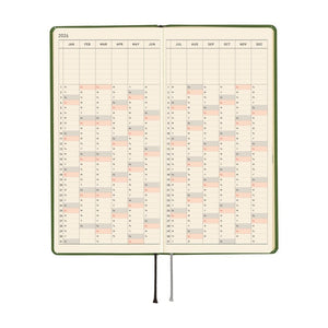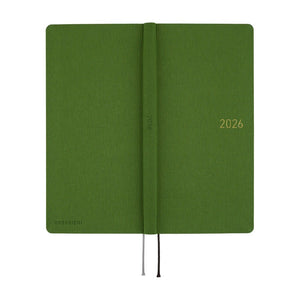 The Hobonichi Techo Weeks is a compact planner with a weekly spread, offered in a variety of cover designs and colors. Antique Green pairs a deep, warm cover with brassy gold foiling, creating an elegant design that expresses a classical sense of beauty.