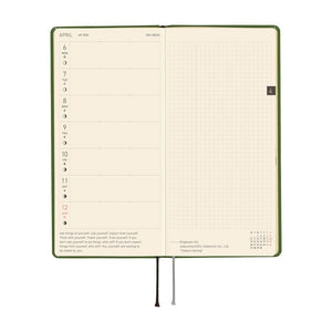 Slim and portable—about the size of a long wallet—this English-language planner pairs each weekly spread with a blank page for notes, plus 71 additional grid pages, monthly calendars, and a habit tracker. Like all Hobonichi planners, it’s made with thin yet strong Tomoe River paper, allowing for a large number of pages in a slim profile.