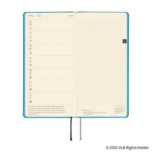 Slim and portable—about the size of a long wallet—this English-language planner pairs each weekly spread with a blank page for notes, plus 71 additional grid pages, monthly calendars, and a habit tracker. Like all Hobonichi planners, it’s made with thin yet strong Tomoe River paper, allowing for a large number of pages in a slim profile.
