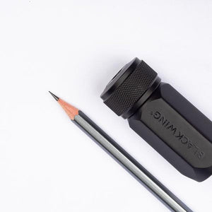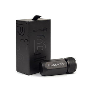 Blackwing's One-Step Long Point Sharpener creates a long, curved point that looks beautiful and resists breakage. Its compact design is small enough to fit in the palm of your hand or as a permanent part of your every day carry. The body is made of durable machined aluminum and the sharpening unit features a German steel blade. The canister can hold three fresh sharpens before needing to be emptied.