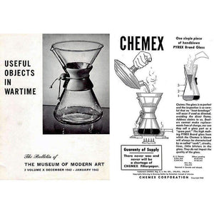 Further Reading: Over the years, Chemex Coffeemakers have been recognized as outstanding examples of American design. The Classic Chemex Coffeemaker is in the permanent collection of several museums, such as the Museum of Modern Art in New York, the Smithsonian, the Philadelphia Museum and the Corning Museum located in Corning, NY. Chemex is proudly headquartered in Massachusetts, where they continue to craft their iconic brewers with the same commitment to quality and design.