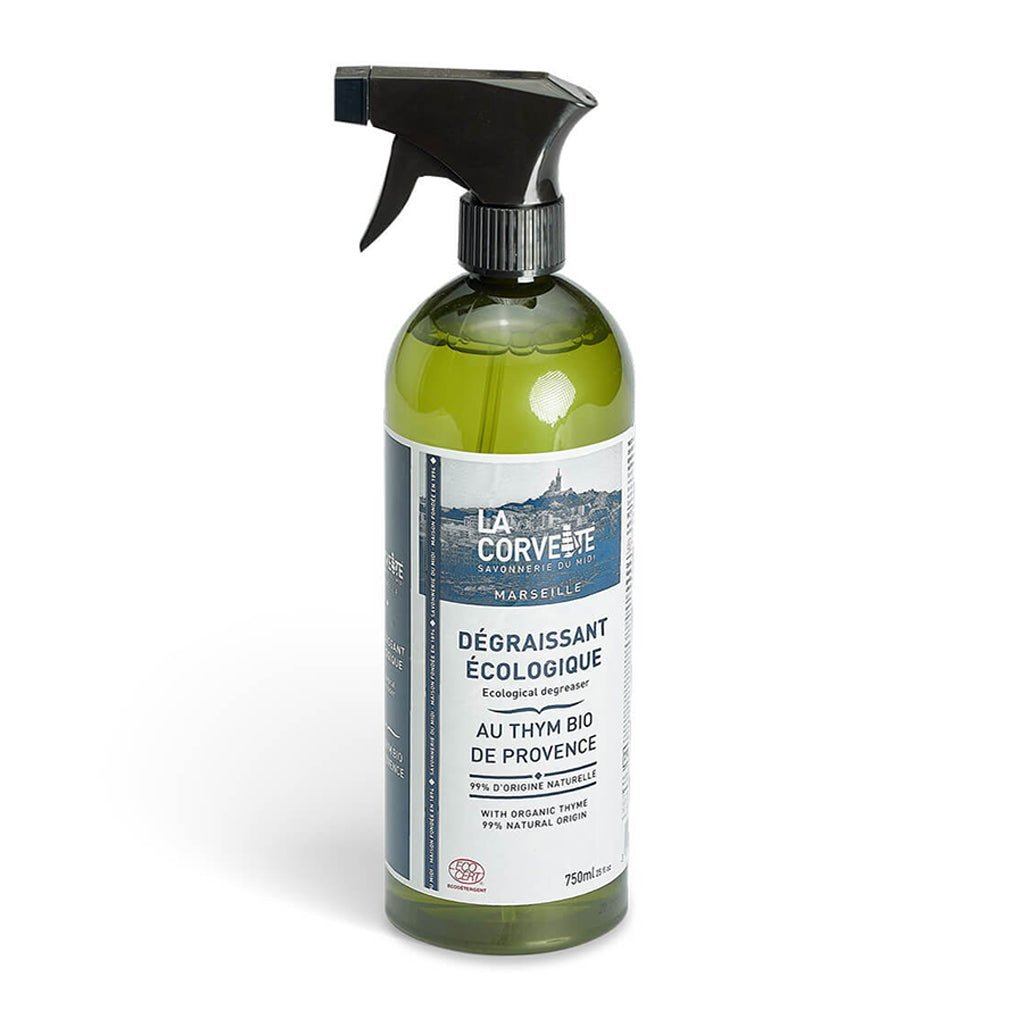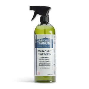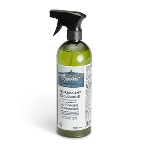 La Corvette Organic Thyme Degreaser dissolves grease and brings shine to all washable surfaces. Made with extracts of organic thyme, sage, and lavender from Provence, France, the formula is certified according to the ECOCERT standard and 99.5% of the ingredients are of natural origin.