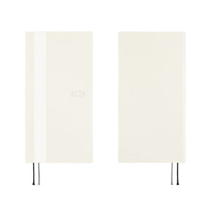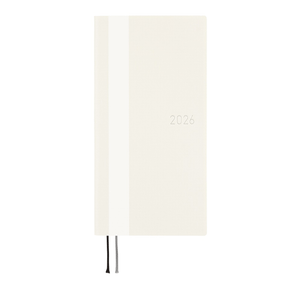 The Hobonichi Techo Weeks is a compact planner with a weekly spread, offered in a variety of cover designs and colors. White Line: Ivory has been a staple in the lineup for years, featuring a smooth PVC cover in ivory with a single white stripe for a soft, elegant design.