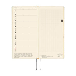Slim and portable—about the size of a long wallet—this English-language planner pairs each weekly spread with a blank page for notes, plus 71 additional grid pages, monthly calendars, and a habit tracker. Like all Hobonichi planners, it’s made with thin yet strong Tomoe River paper, allowing for a large number of pages in a slim profile.