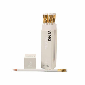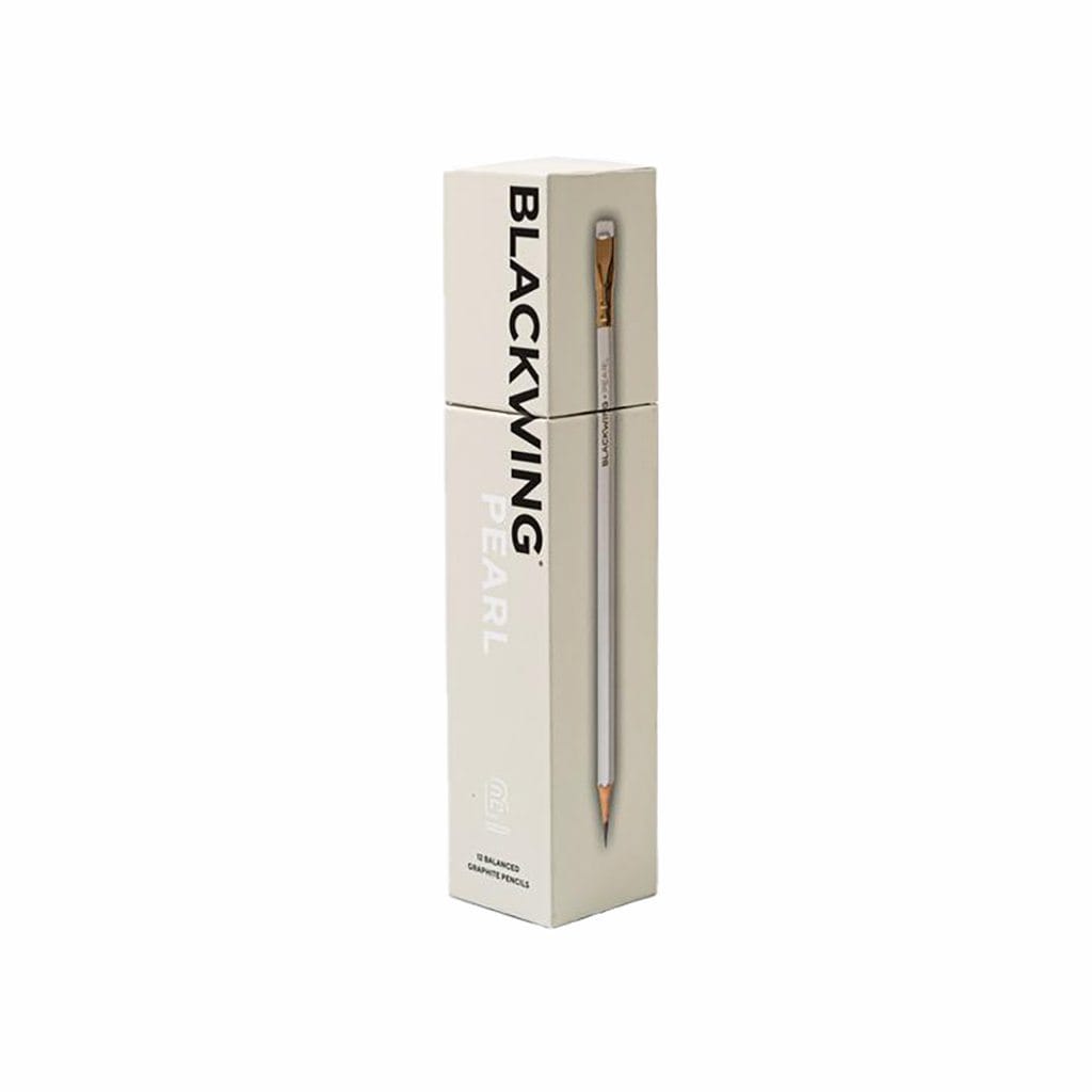 The Blackwing Pearl features a pearl white finish, black imprint and eraser, and a balanced and smooth graphite core that is softer than the graphite found in the Blackwing 602, but firmer than the graphite found in the Blackwing Matte.