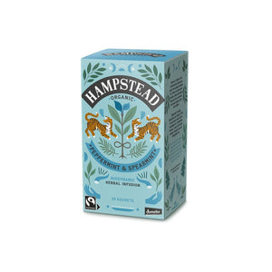 Hampstead Tea has enhanced peppermint's traditionally renowned digestive properties by pairing it with spearmint for a cool, refreshing and soothing organic, fair trade tea. Naturally caffeine free.