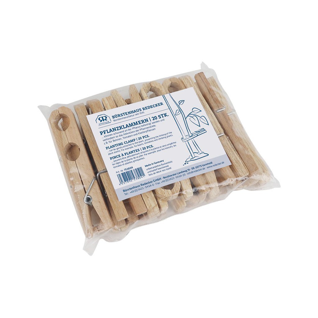 These wooden clamps are specially designed for climbing plants, functioning like spring-loaded clothespins but with wide holes for stems to pass through. They are perfect for supporting delicate stems in your garden, preventing them from bending or breaking. Ideal for beans, tomatoes, cucumbers, sweet peas, and other plants, these clamps are crafted from untreated beechwood, offering an eco-friendly alternative to plastic garden supports.