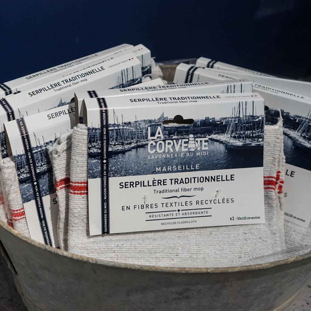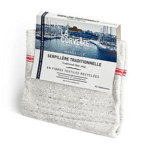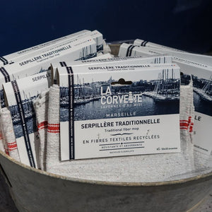 Made in France using recycled fibers from the textile industry, this Floor Mop Cloth from La Corvette uses a thick thread and a traditional weave for sturdy construction and good absorption properties. La Corvette's commitment to minimal packaging means it comes packaged only with a recyclable cardboard header.