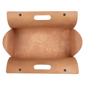 A stout leather bag for tools, garden harvests, or day-to-day bits and bobs, with easy-grab handles, firm snaps, and the slight air of a doctor’s bag.