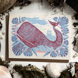 This majestic whale is on a mission to deliver a splash of happiness to someone special. Printed with risograph techniques, it creates a vibrant, screen-printed look for a unique touch. The card is blank inside, allowing you to add your own personal message.