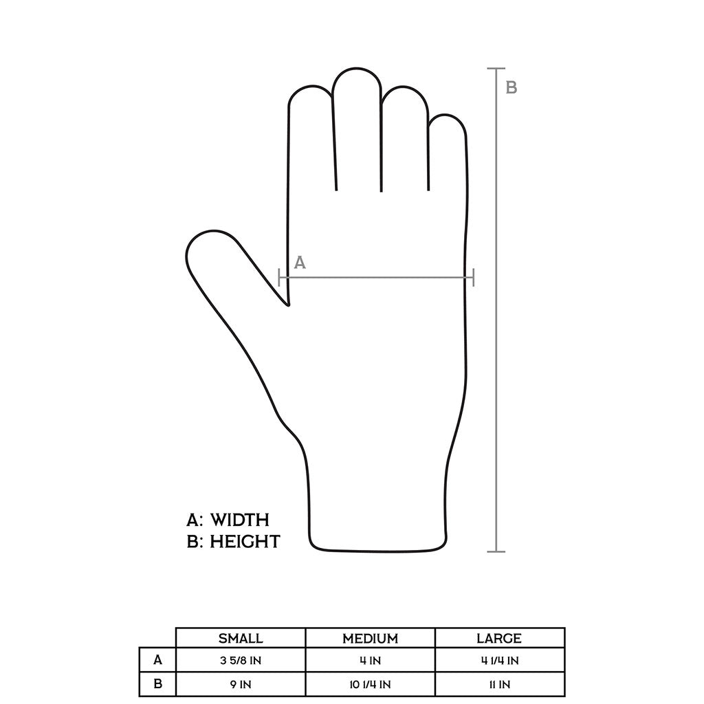 Specifications: See size chart for finished glove measurements. Please allow for slight variation in these measurements.
