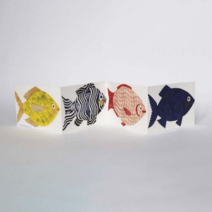 Four little fishies went swimming one day, all in a row, on this small accordion-folded card.