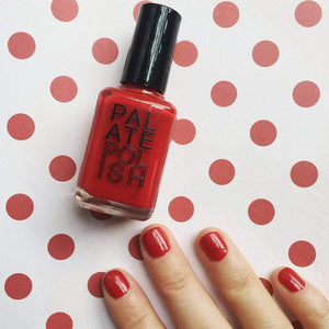 Palate Polish is small batch and 10-free, excluding many typical toxic ingredients found in nail polish. It is also vegan and cruelty-free.
