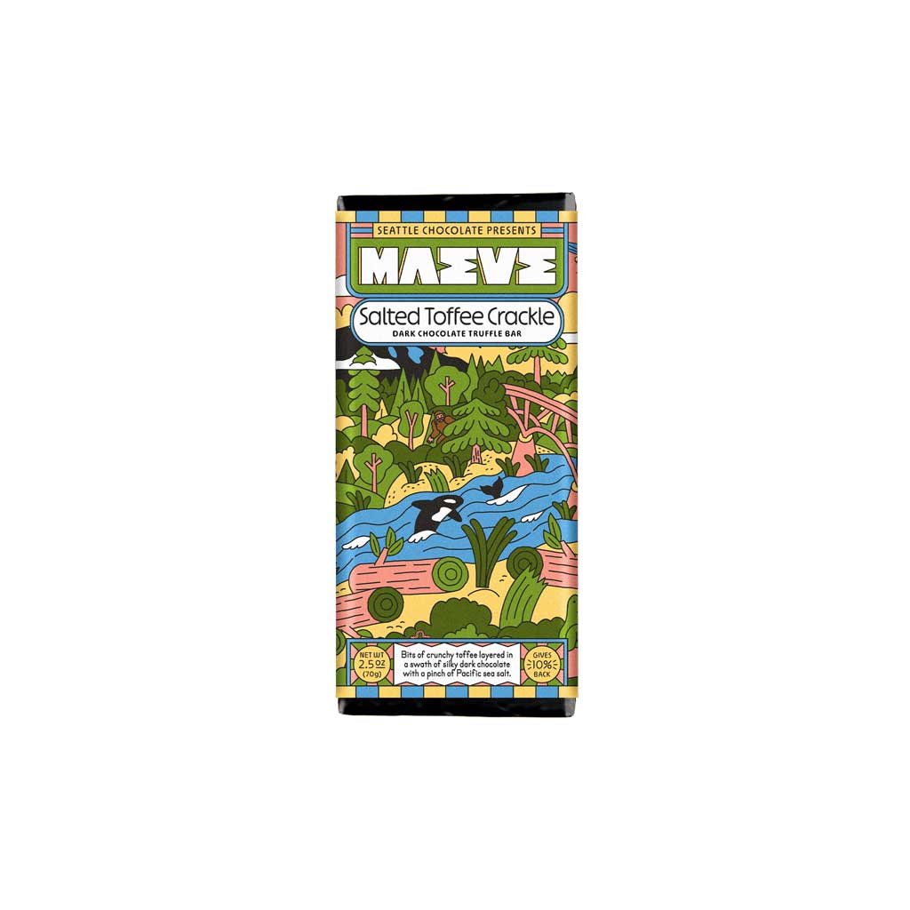 With buttery salted toffee crunch wrapped in rich dark chocolate, Maeve's Salted Toffee Crackle Truffle Chocolate Bar is sure to satisfy any chocolate lover.