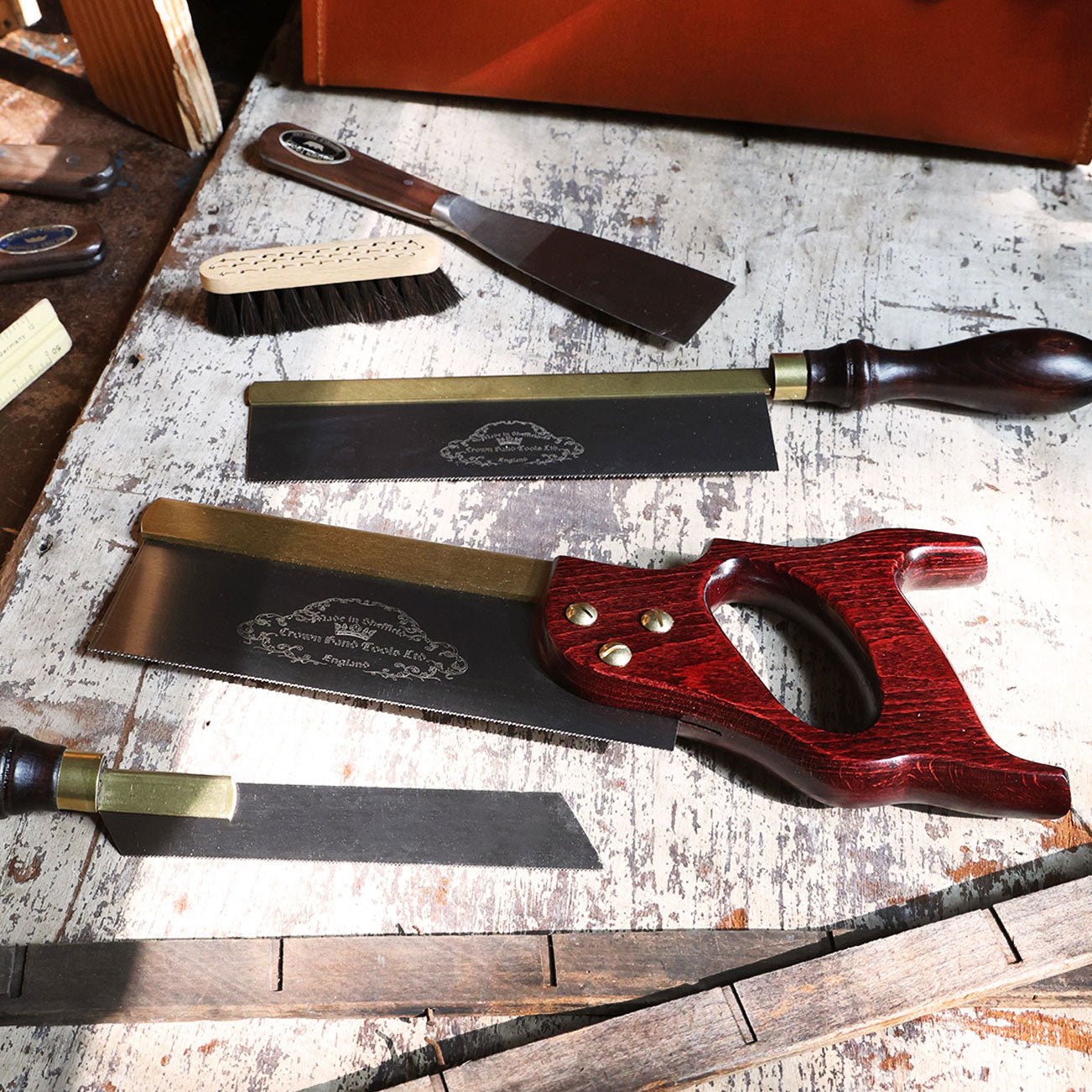 Their 8" Gentleman's Saw has a carbon steel blade with a brass back for added rigidity and accuracy, plus an ergonomic hardwood handle.