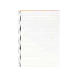A kraft paper cover provides durability and doubles as a firm writing surface, making the notebook sturdy enough to use while standing. Twin-ring binding allows for easy page turns and lays flat—or folds back completely to save space on your desk. Rounded coil ends prevent snags and sharp edges, making it safe to toss in your bag or backpack.