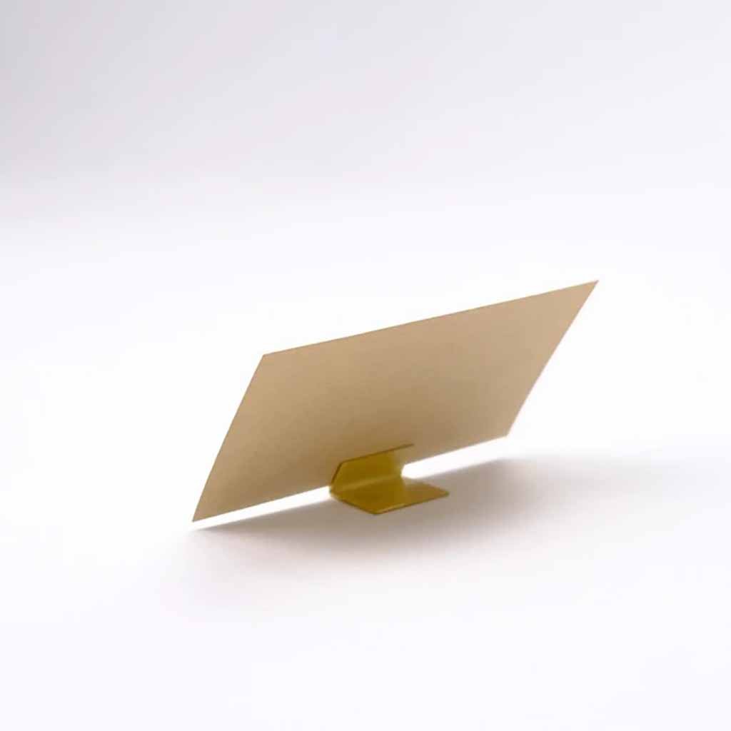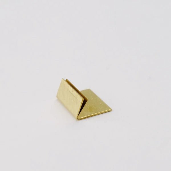 We originally purchased these tiny brass card stands to display small signs in our retail shops. We liked them so much, we found ourselves using them for all sorts of things around the office or at home, like holding small photos or bits of ephemera on our desks or labelling contributions to a potluck spread. They'd be perfect for displaying place cards at a wedding or dinner party.