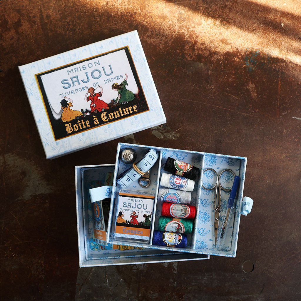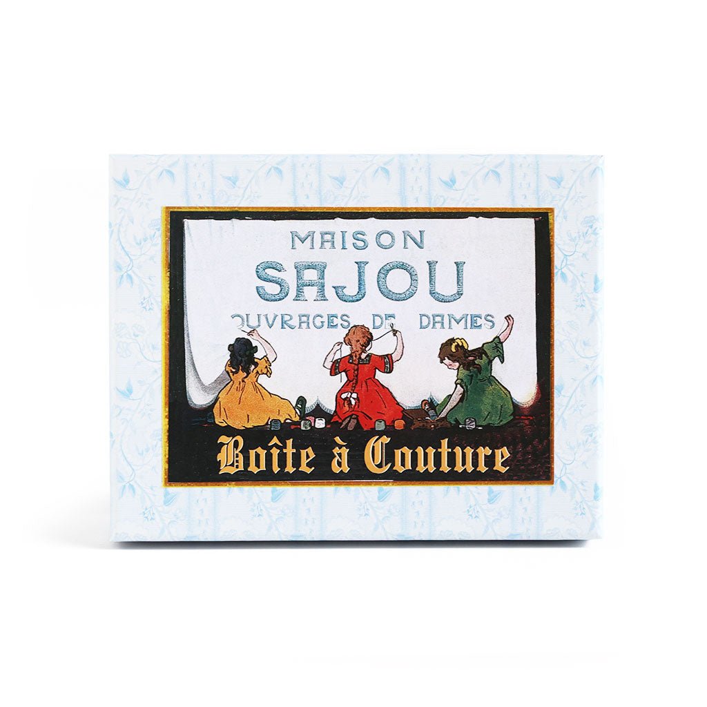Decorated with Maison Sajou's iconic Little Sajou Girls, this sewing set is one of their best selling products. It holds all the essentials for your everyday mending needs in a convenient box inspired by vintage haberdashery kits.