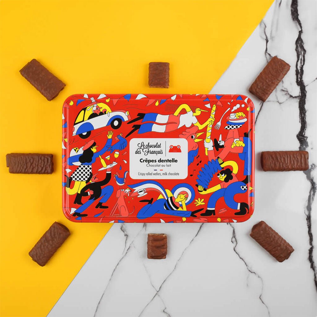 This cheerful tin, featuring whimsical artwork by French illustrator and animator Simon Landrein, makes a thoughtful gift or an easy treat to share. Inside are crisp milk chocolate wafers with the right balance of creamy chocolate and delicate crunch.