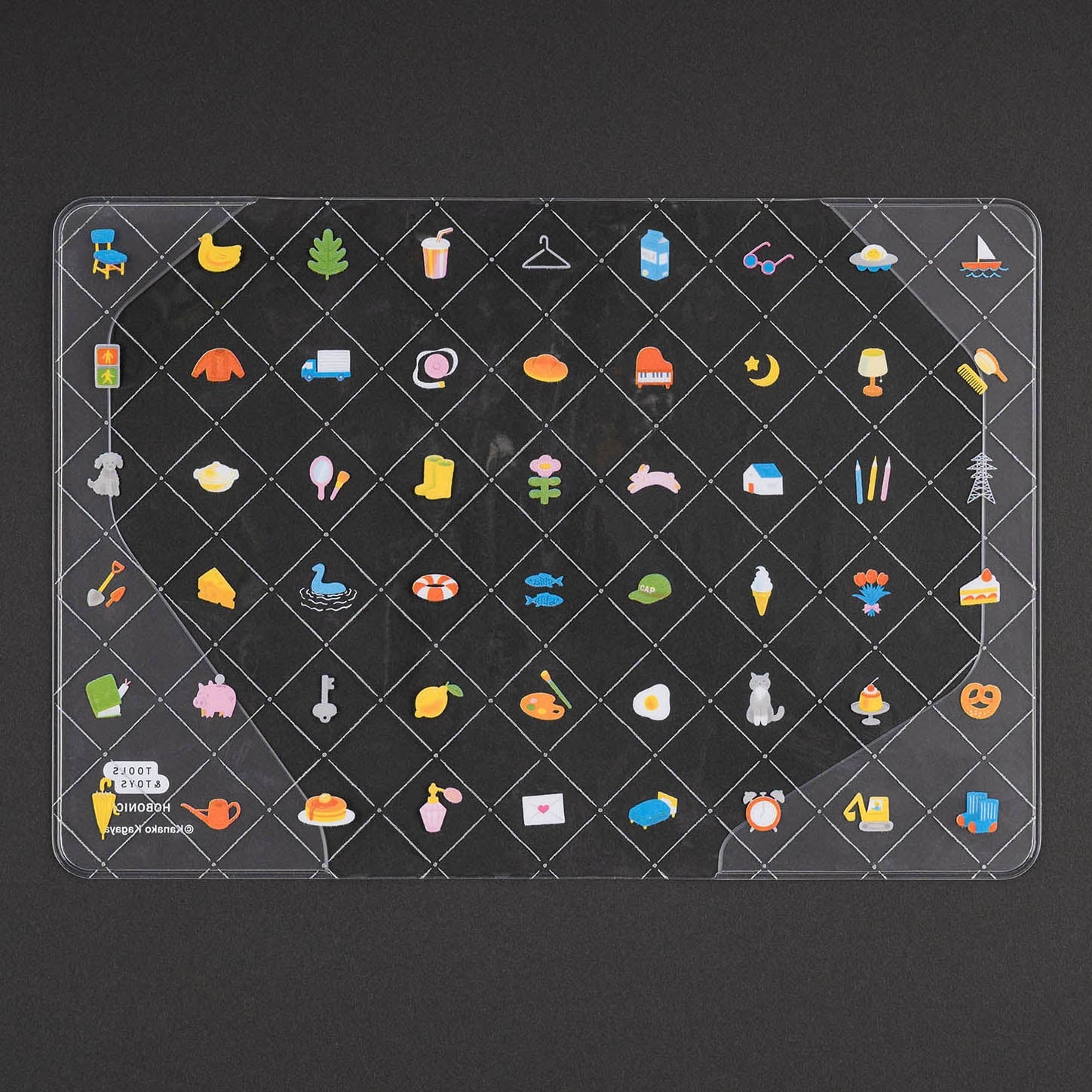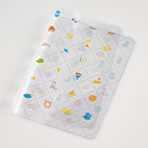 This flexible, clear plastic covering fits select Hobonichi A6 Techo Original size covers and is designed to protect them from wear and tear. This design by Kanako Kagaya is filled with motifs you see in your day-to-day life. The diagonal lines are printed in silver ink, creating an elegant look.