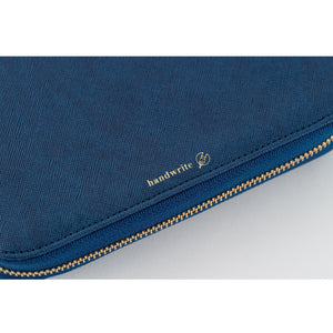 A cover for the  Hobonichi Techo Original A6. This deep blue cover evokes the still surface of a lake. "Lago" means lake in Italian. The cover is light and easy to carry, and the full-surface embossing gives it a refined look. The cover zips up to keep papers and accessories neatly inside its pockets.