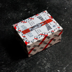 A decorative box containing an assortment of 12 vintage colors of Laine St. Pierre embroidery thread.