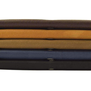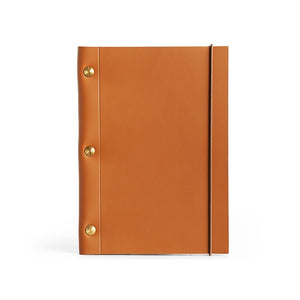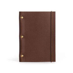 Our Le Kraft notebooks are sold with brass bindings and elastic closure bands that are dyed to match the color of the leather. Photos are for leather color reference only and may show nickel bindings or white elastic. Please note that as a naturally-tanned leather product, some variation in color and texture may occur.