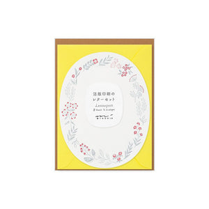 Midori's letterpress stationery sets feature whimsical letterpress-printed paper with matching envelopes and a lined guide sheet.