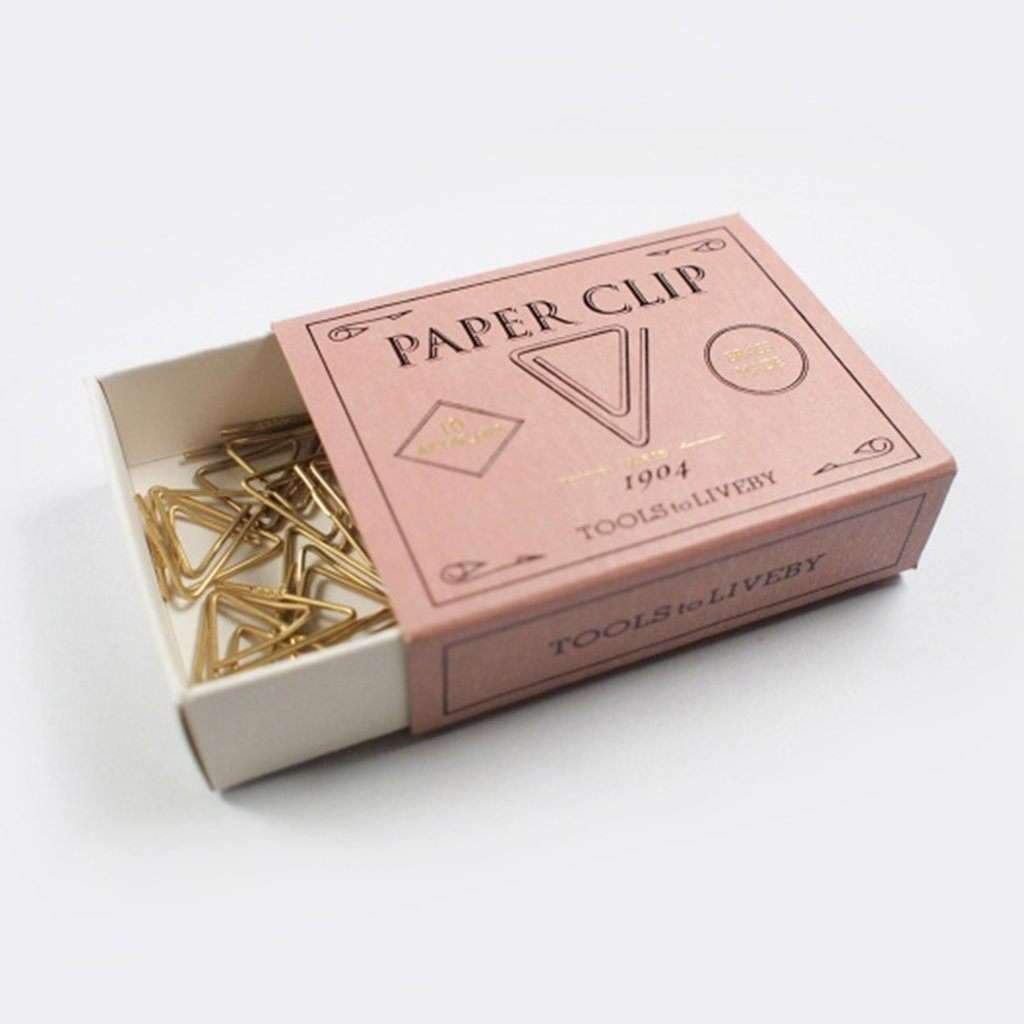 These paper clips are made from brass wire and are inspired by paper clip patents from the late 19th and early 20th century. Tools to Liveby improved the designs and reproduced six popular shapes.