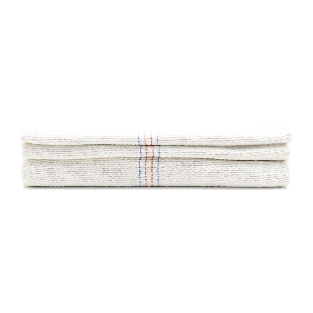 Simple but well-crafted kitchen towels that can absorb any liquid in the kitchen, made of soft 100% cotton. Great for drying dishes, wiping up spills, or as a hand towel. Available in two sizes: large for the big jobs and small for quick cleanups around the sink. Large is about the size of a generously sized dish towel, and small is roughly the size of a cloth napkin, making it ideal to replace paper napkins or paper towels in the kitchen.