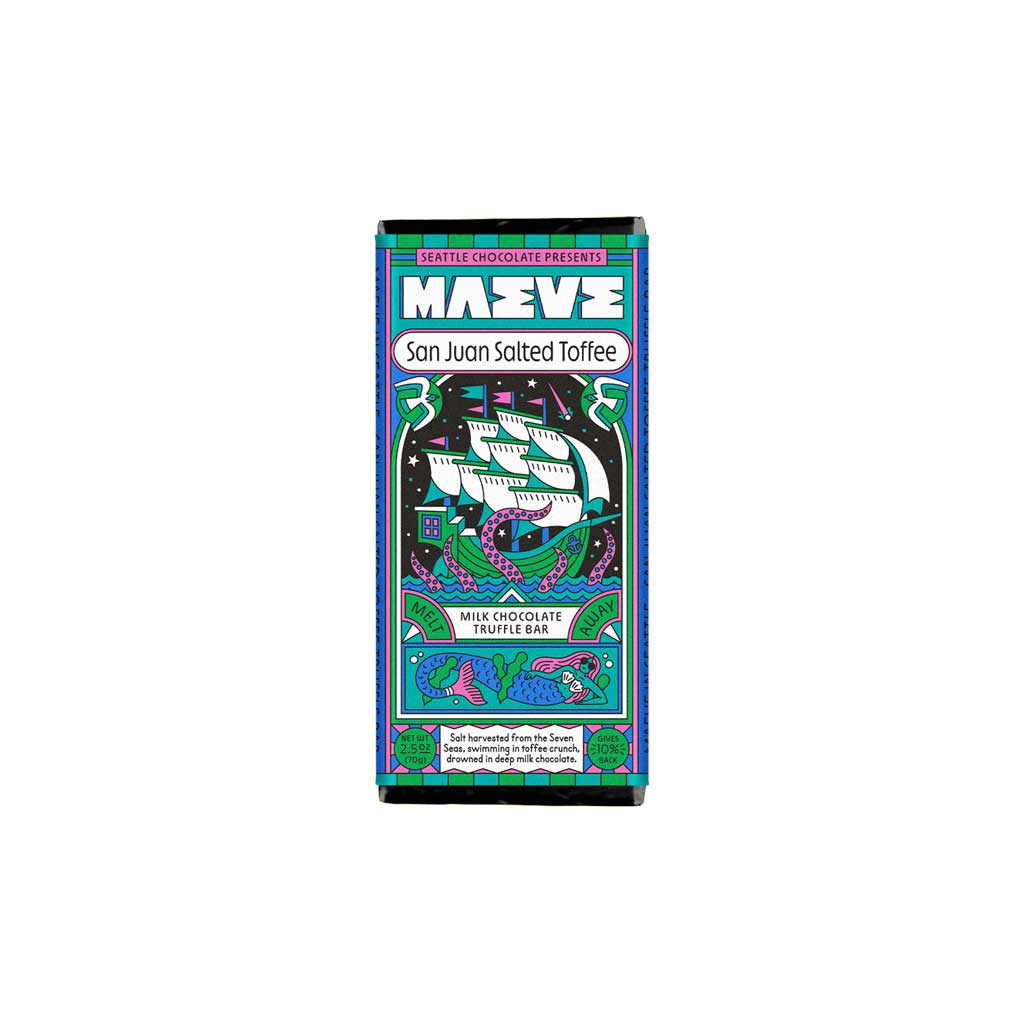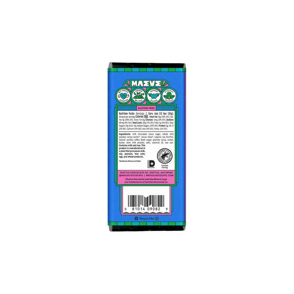 With crackly salted toffee enrobed in dreamy milk chocolate, Maeve's San Juan Salted Toffee Truffle Chocolate Bar will satisfy any chocolate lover's craving.