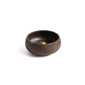 Ume's two-piece set contains their small brass dome incense holder and a wheel-thrown pottery bowl made in Japanese wabi sabi style with a rough clay texture. They can be used together or separately and come packaged in a matte black gift box.