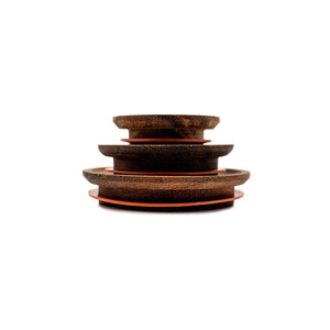 Weck's wooden lids are made of Acacia wood and are compatible with their glass jars. They feature a rubber ring to help hold the lid on the jar.*