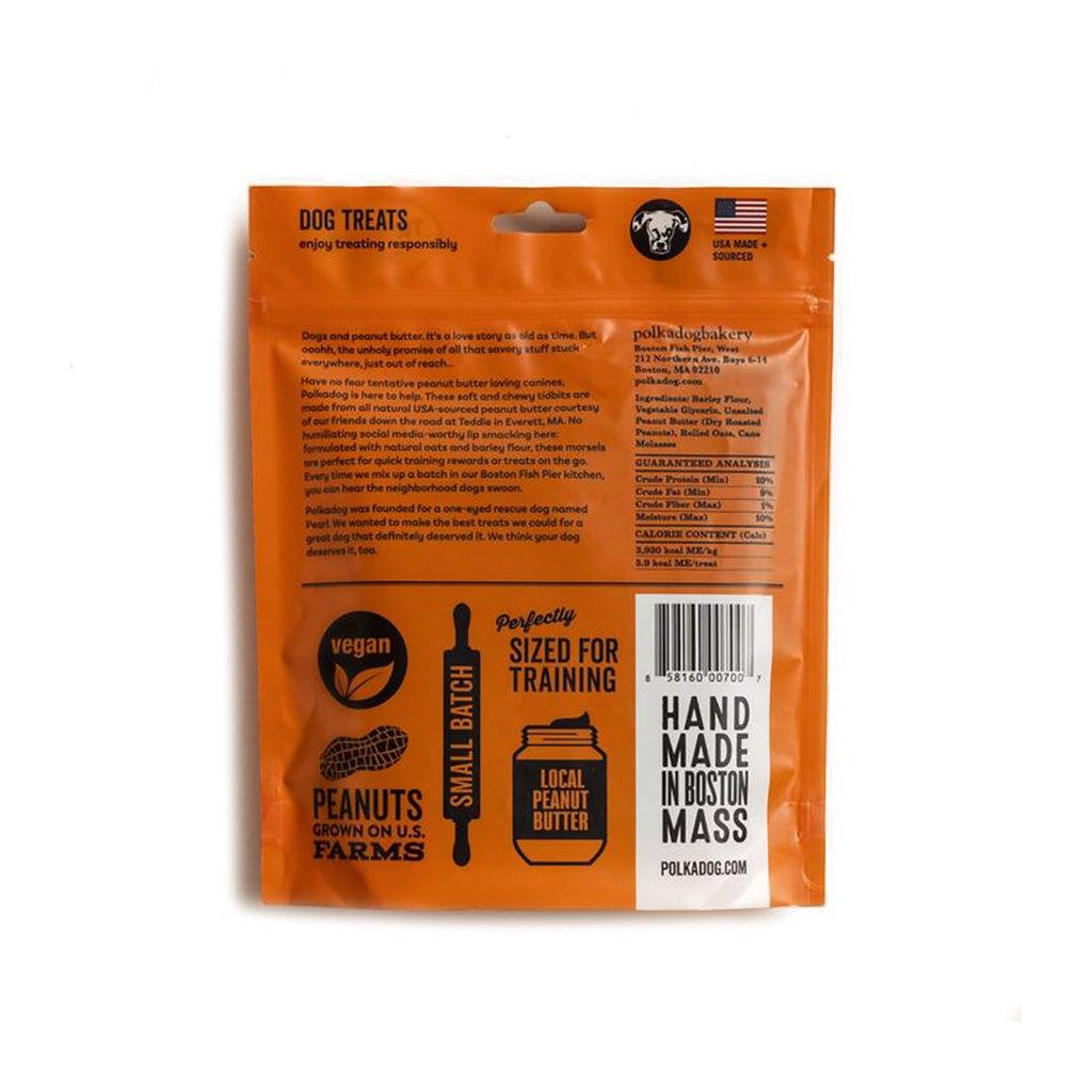 Formulated with all-natural peanut butter from Boston's beloved Teddie's Peanut Butter, these Polkadog peanut butter dog treats are soft, easy on the stomach, and ideally show-sized-for-training rewards or quick treats on the go.